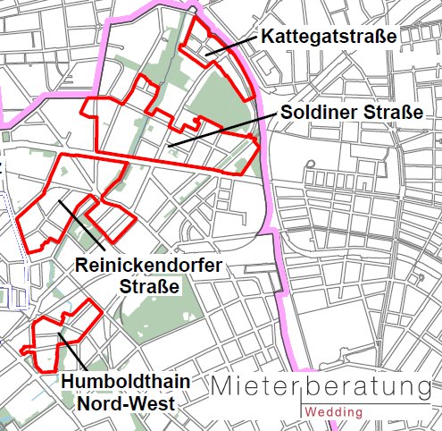 Für alle Mieter*innen in den Milieuschutzgebieten gibt es eine kostenlose Mieterberatung. Die Beratung erfolgt im Auftrag des Bezirksamts Mitte durch die Mieterberatung Prenzlauer Berg GmbH.